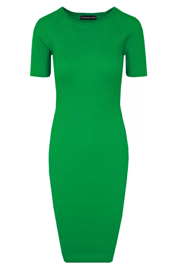 WOW! Deze jurk is een echte eyecatcher! De jurk is voorzien van een fijne ribstof met veel stretch en korte mouwen.