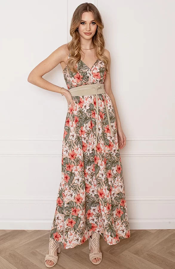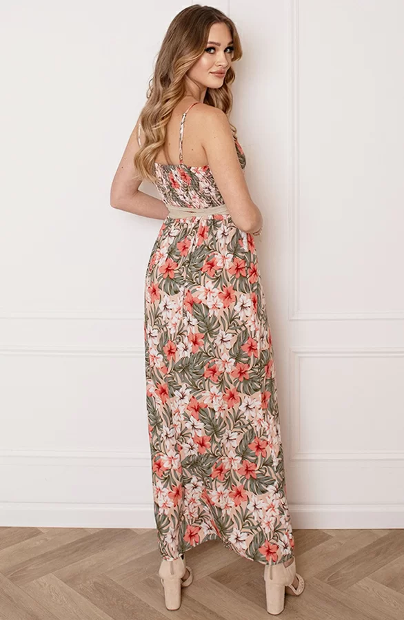 Deze jurk is een musthave voor het komende seizoen! De jurk met bloemenprint is voorzien van spaghettibandjes en elastiek in de taille.
