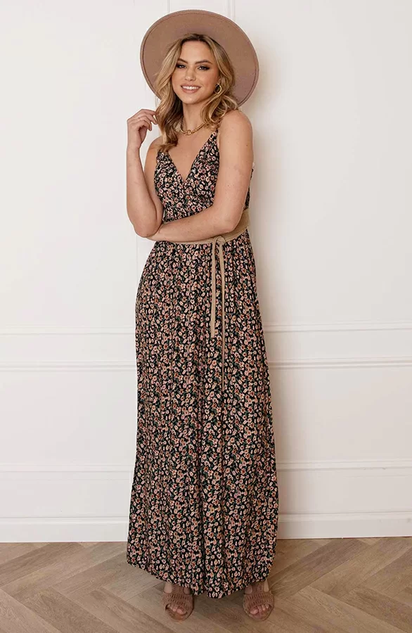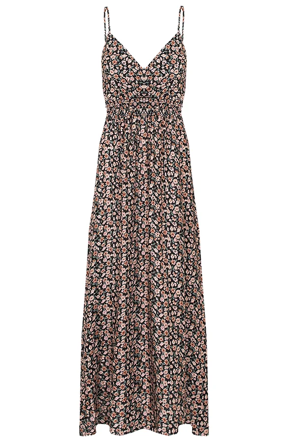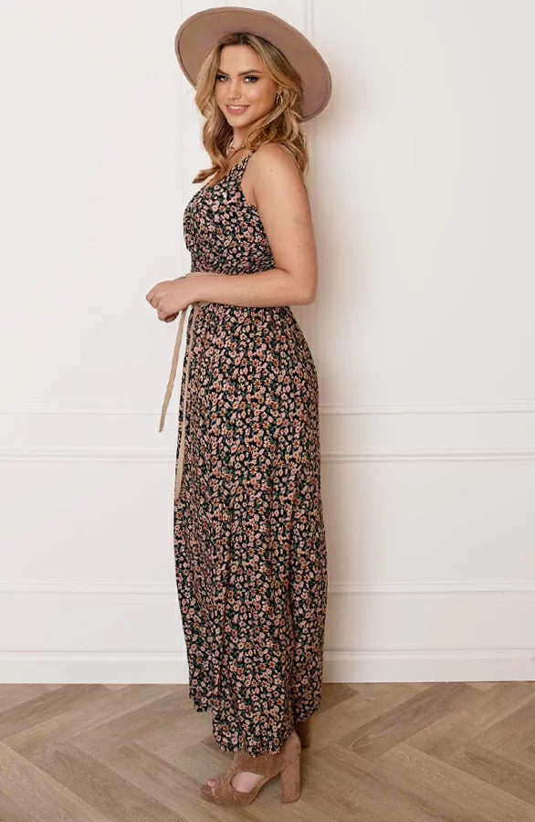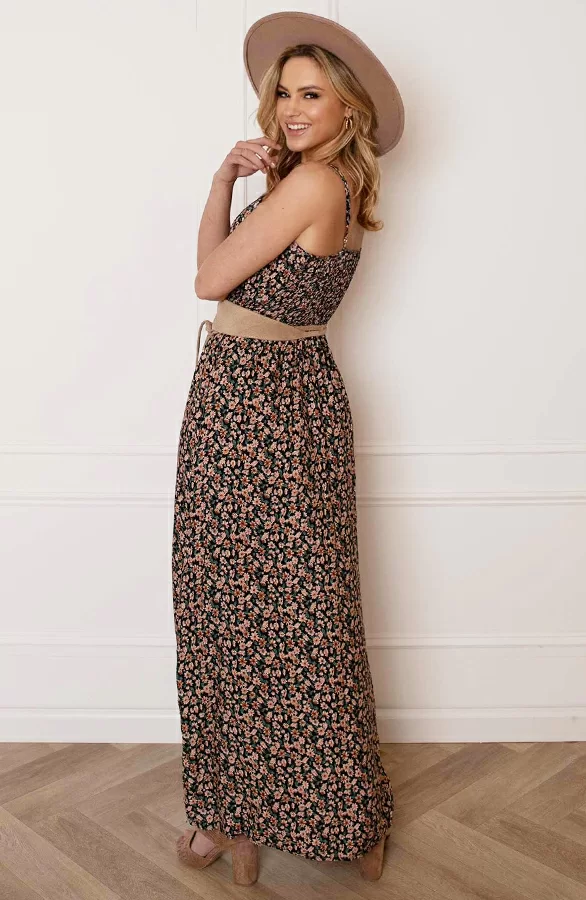 Dé perfecte jurk voor dit seizoen! Deze bloemenprint jurk mag niet ontbreken in jouw garderobe. De jurk is voorzien van een v-hals, spaghettibandjes en elastiek op de rug en in de taille.