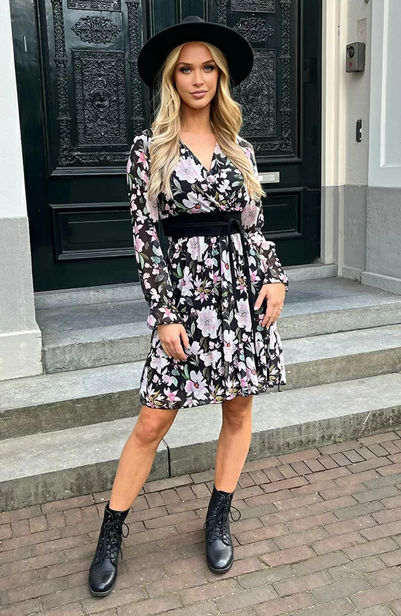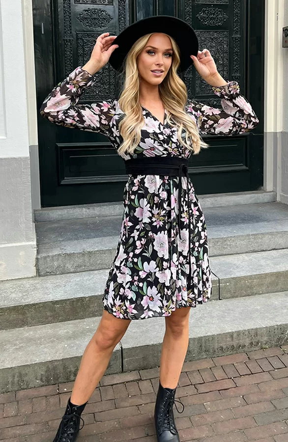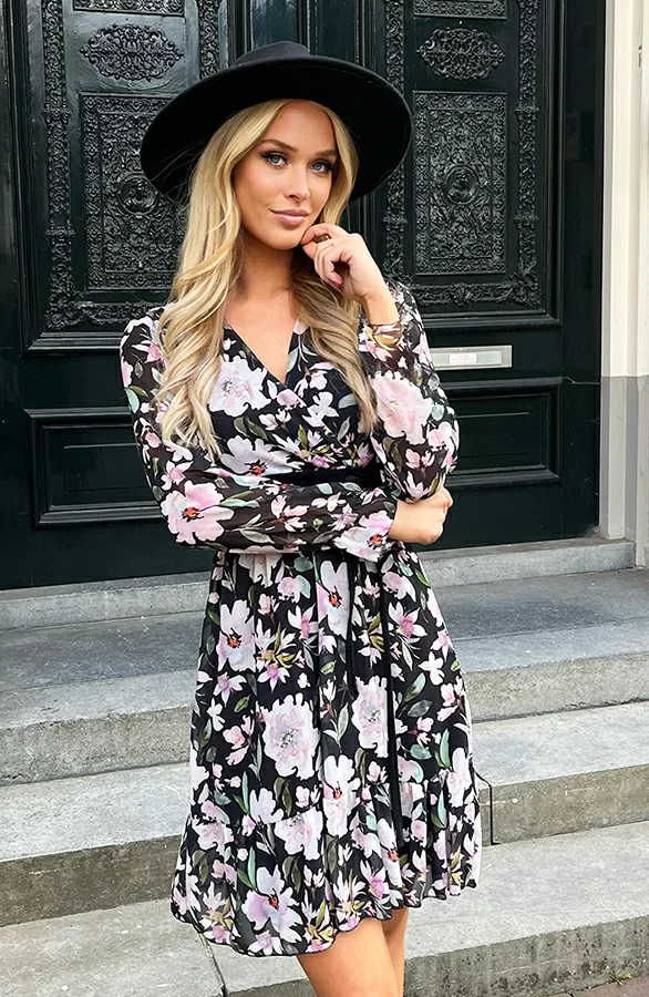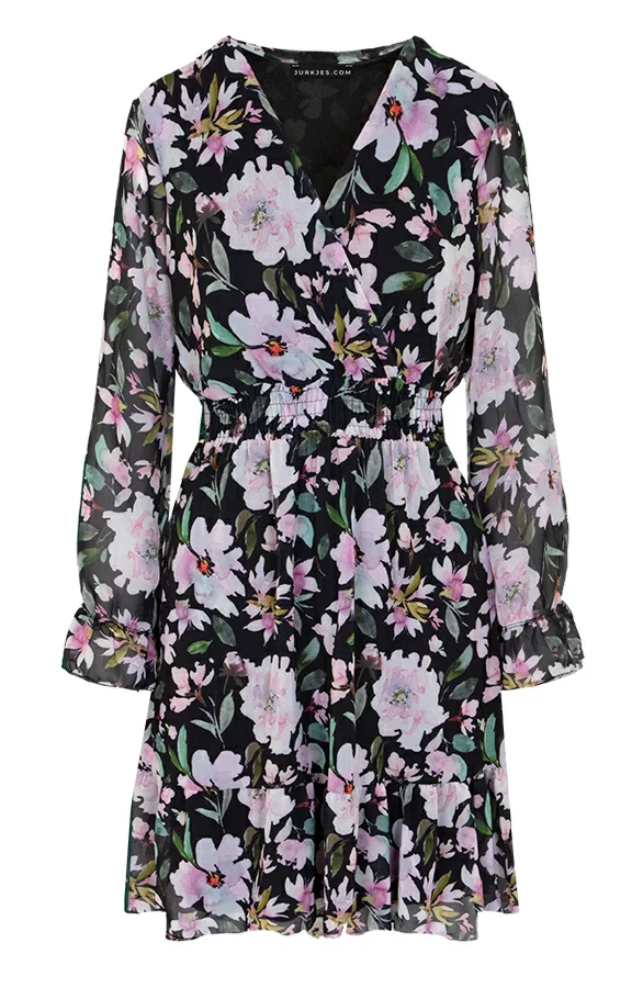 Wordt dit jurkje jouw nieuwe favoriet?! De jurk met bloemenprint is voorzien van ruches, een onderjurk en elastiek in de taille.