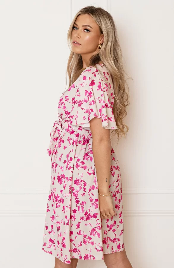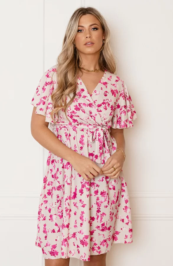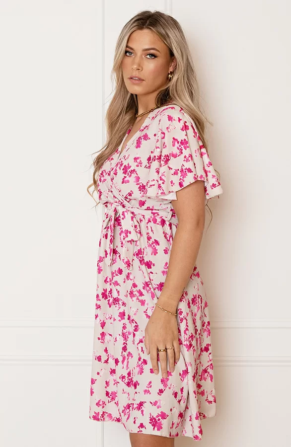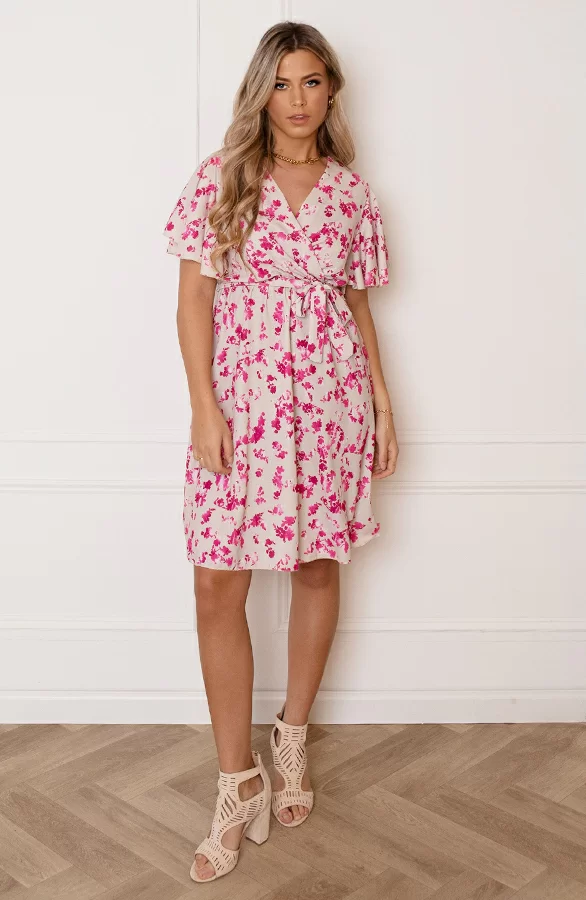 De Nikkie jurkjes zijn mega populair! Deze jurk is nu verkrijgbaar met deze prachtige bloemenprint! De jurk is voorzien van een bijpassend lint om te strikken en een v-hals.