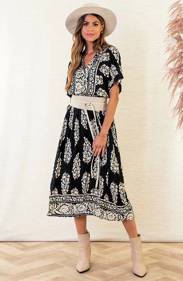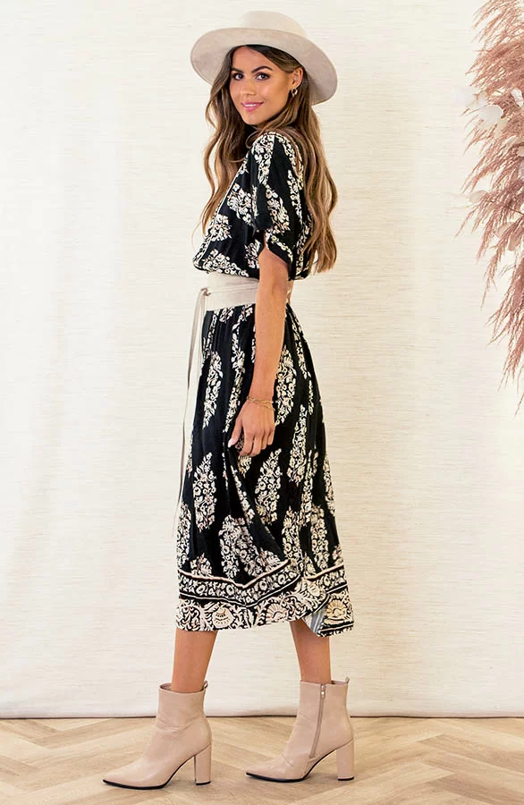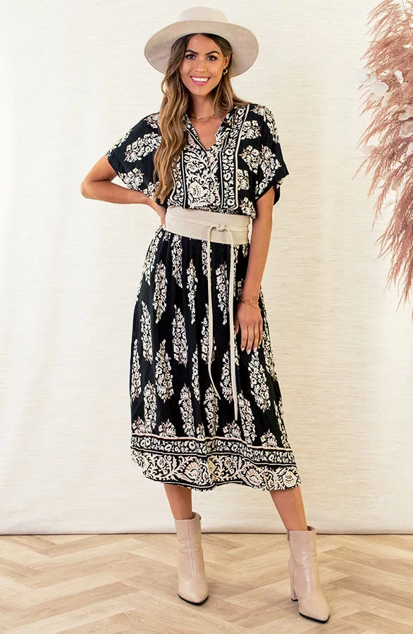 Oohlala! Deze midi jurk met print is een aanwinst voor jouw jurkjes collectie! De blouse jurk valt licht oversized en is super leuk te stylen met een tailleriem!