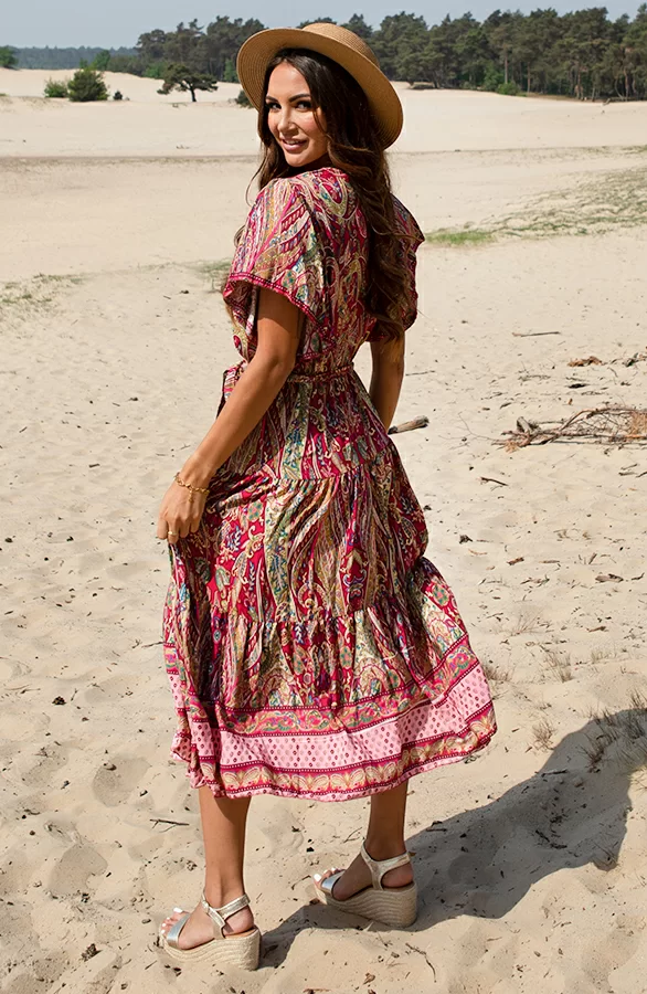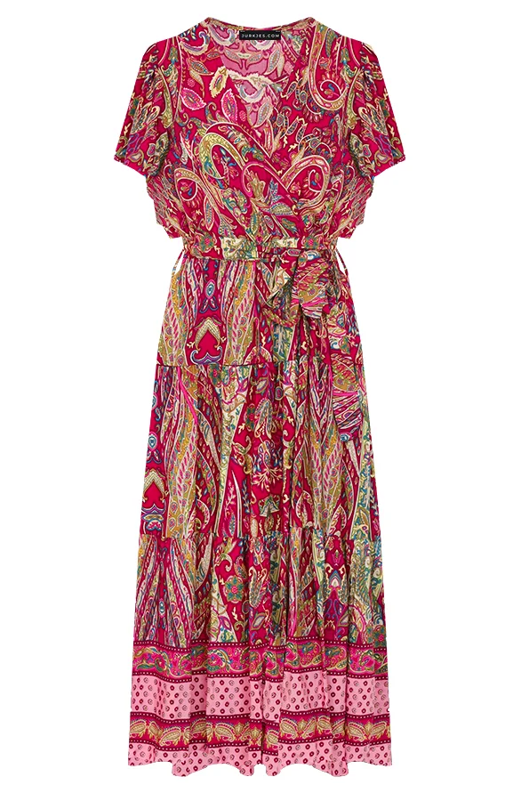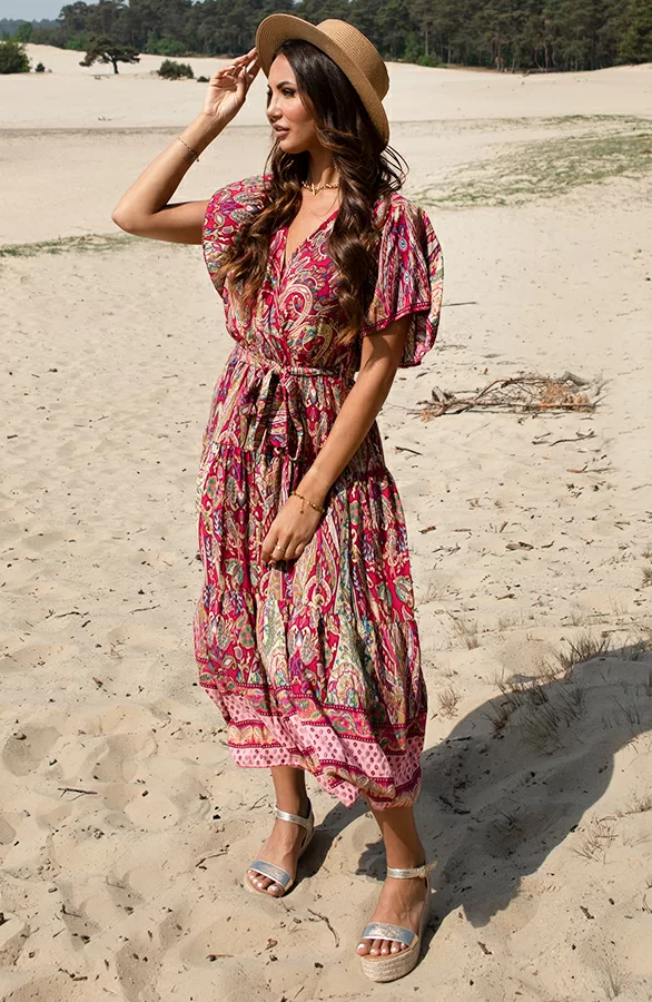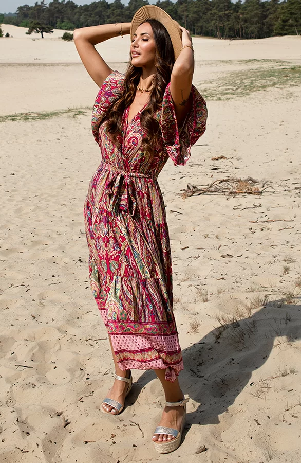 Deze geweldige jurk mag je niet missen! De jurk is voorzien van vleermuismouwen en een bijpassend ceintuur om te strikken.