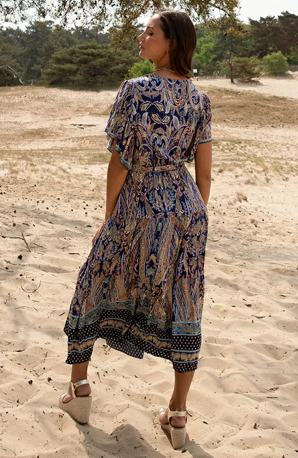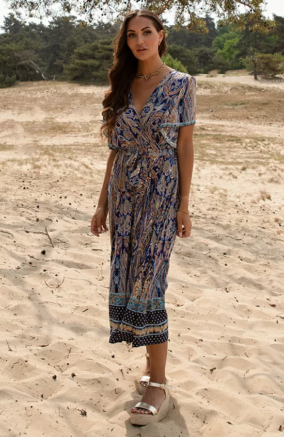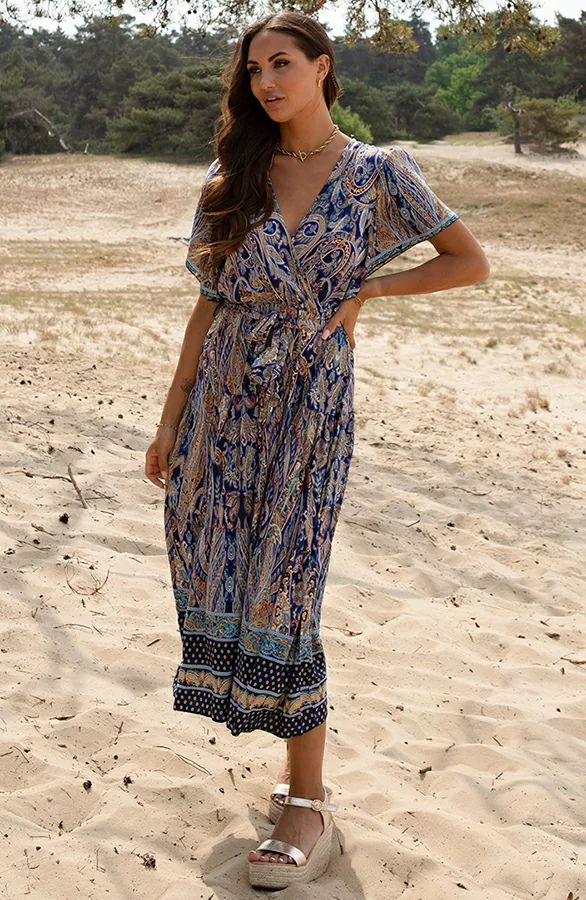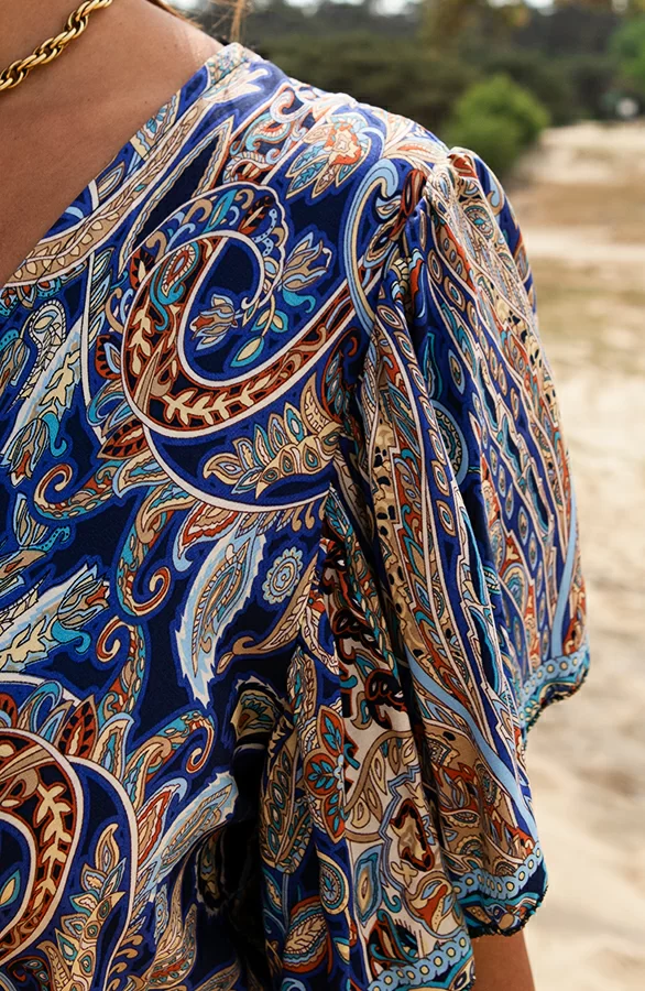 Details: riemlussen, v-hals, vleermuismouwen, bijpassend ceintuur in de taille en elastiek in de taille Materiaal: 100% Viscose