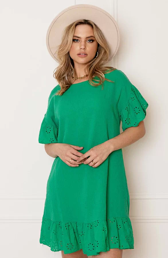 – Detailed Katoenen Jurk Robin Bright Green t.w.v. €44,95
