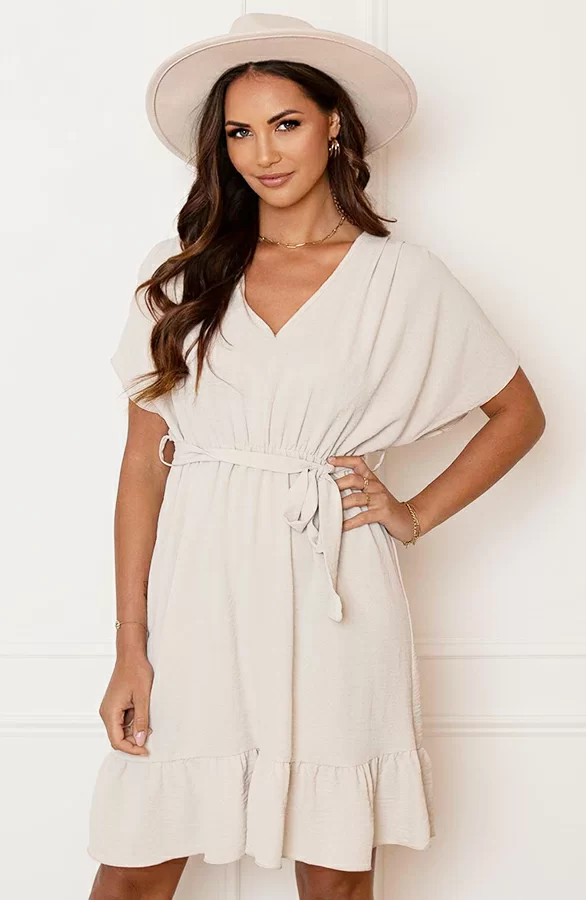 – Ruches Jurk Mandy Beige t.w.v. €26,95