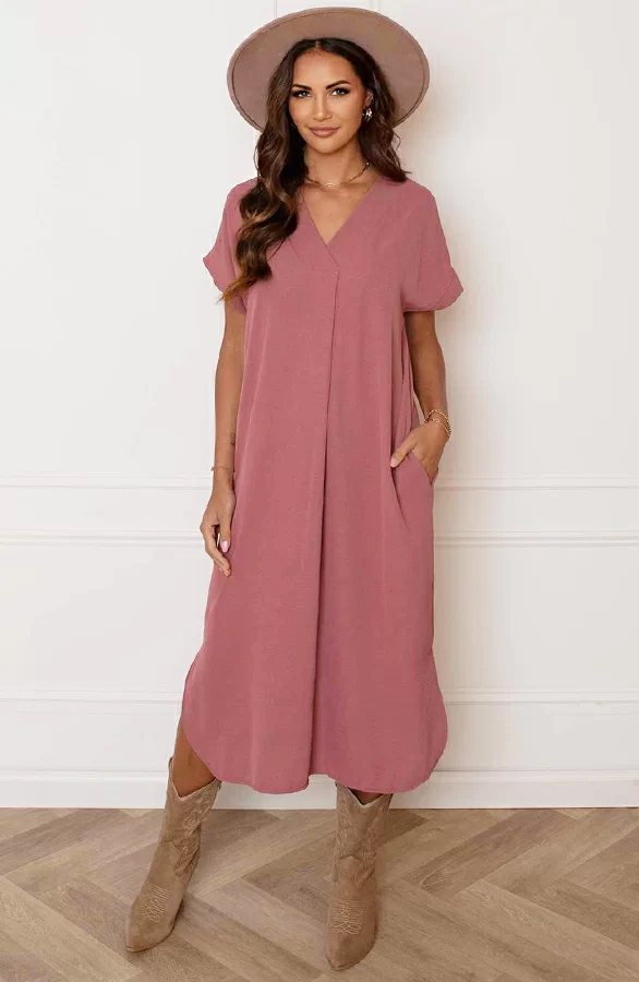 – V-hals Midi Jurk Lilly Dust Roze t.w.v. €29,95