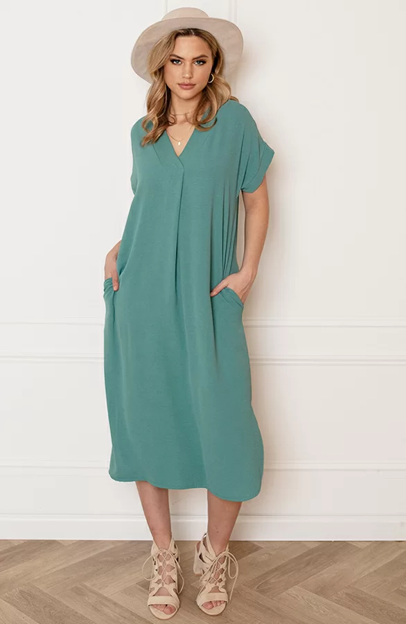 – V-hals Midi Jurk Lilly Mint t.w.v. €29,95