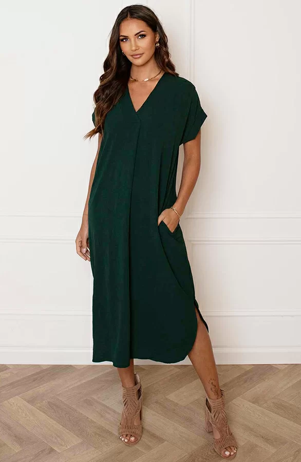 – V-hals Midi Jurk Lilly Smaragd t.w.v. €29,95