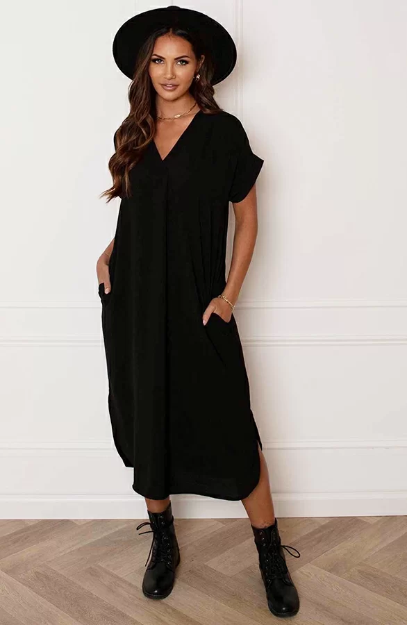 – V-hals Midi Jurk Lilly Zwart t.w.v. €29,95