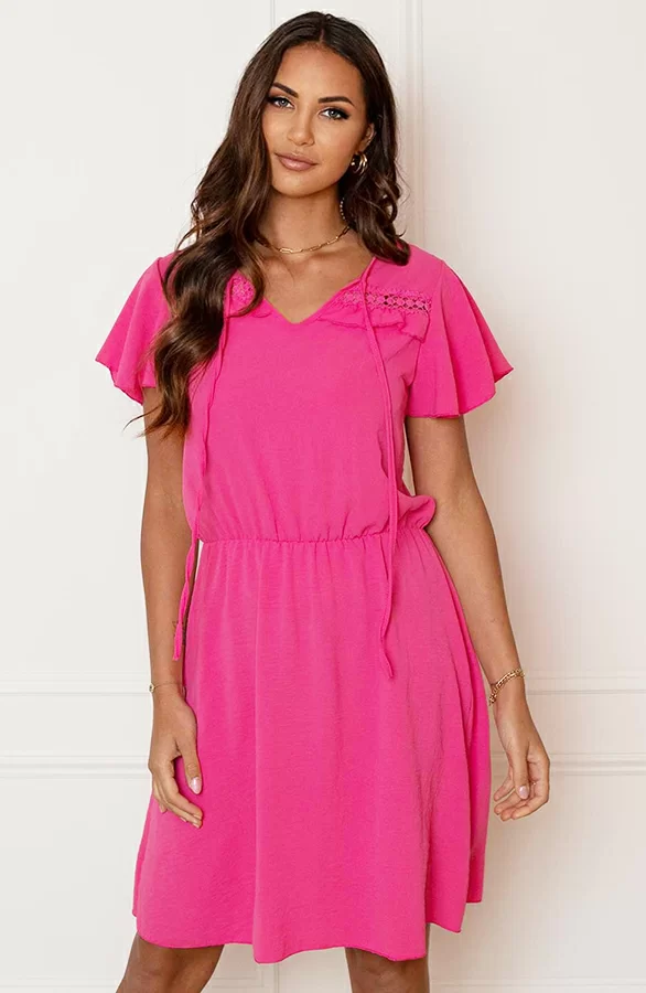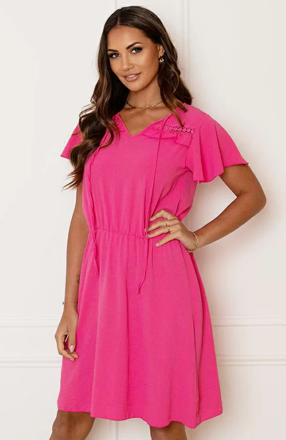 We LOVE pink! Deze fuchsia dress moet je hebben! De jurk is voorzien van korte vleermuismouwen en elastiek in de taille.