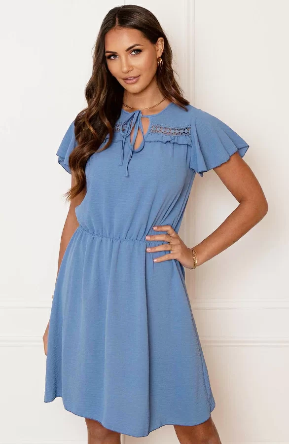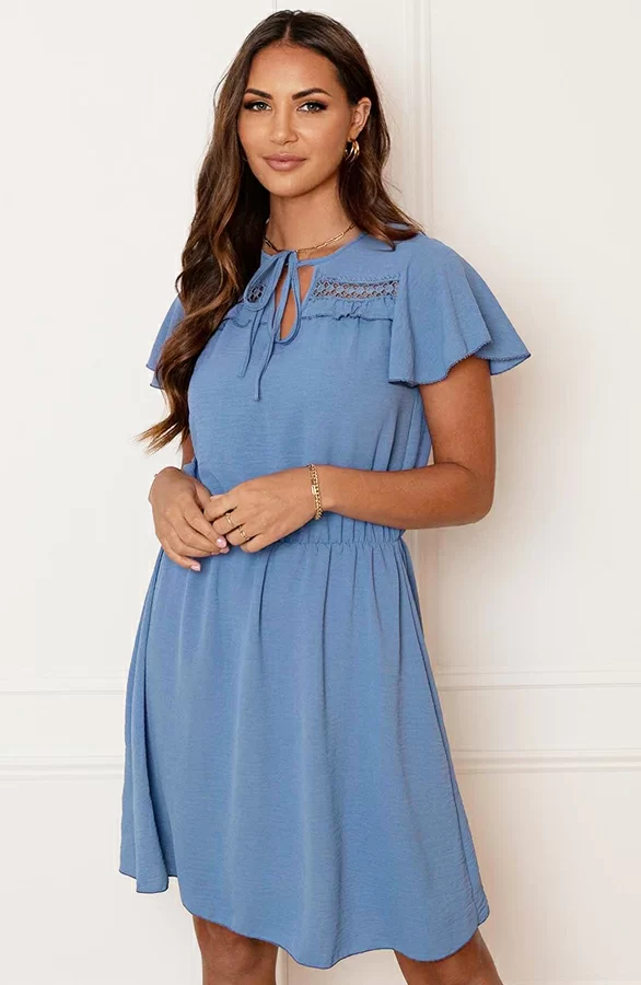 Steel de show met deze prachtige jurk! De jurk is voorzien van vleermuismouwen en elastiek in de taile.