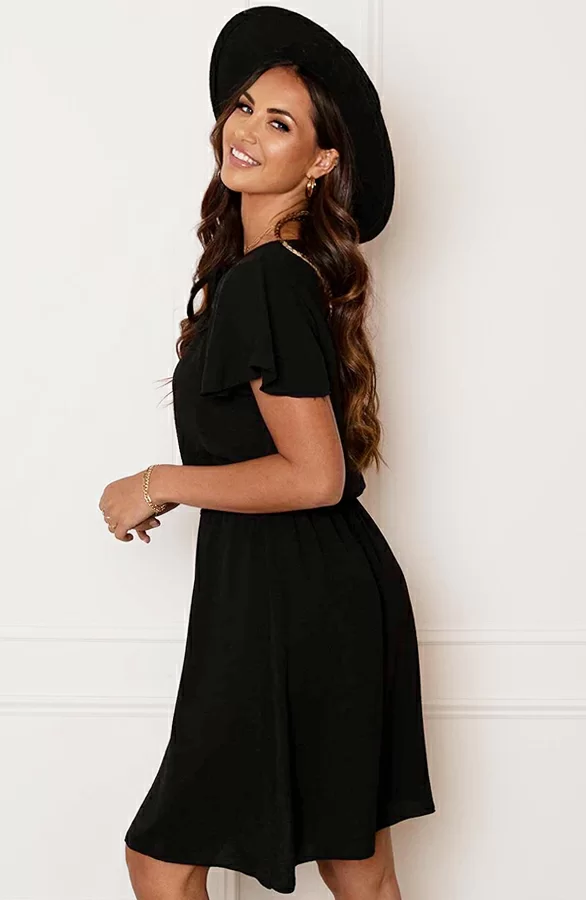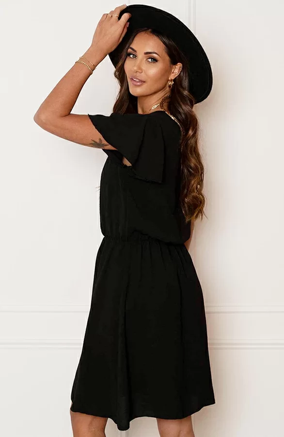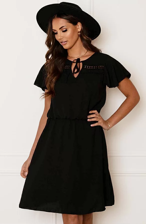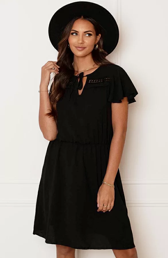 Een zwarte jurk is altijd een goed idee! De jurk is in meerdere kleuren verkrijgbaar en voorzien van té leuke details!