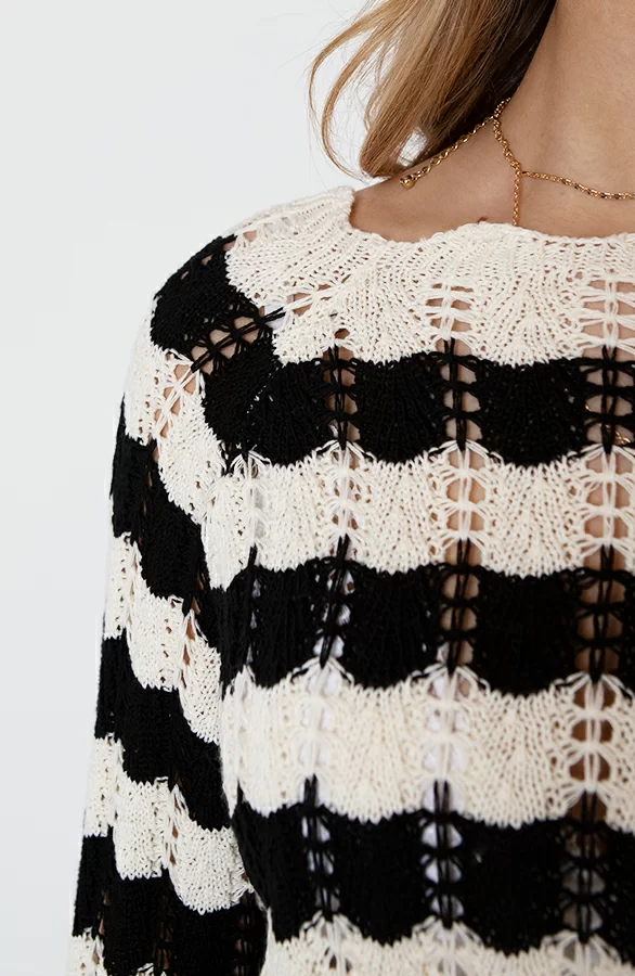 Details: ronde hals, gestreept patroon, doorschijnende stof, gehaakte stof en flared mouwen Materiaal: 100% Katoen