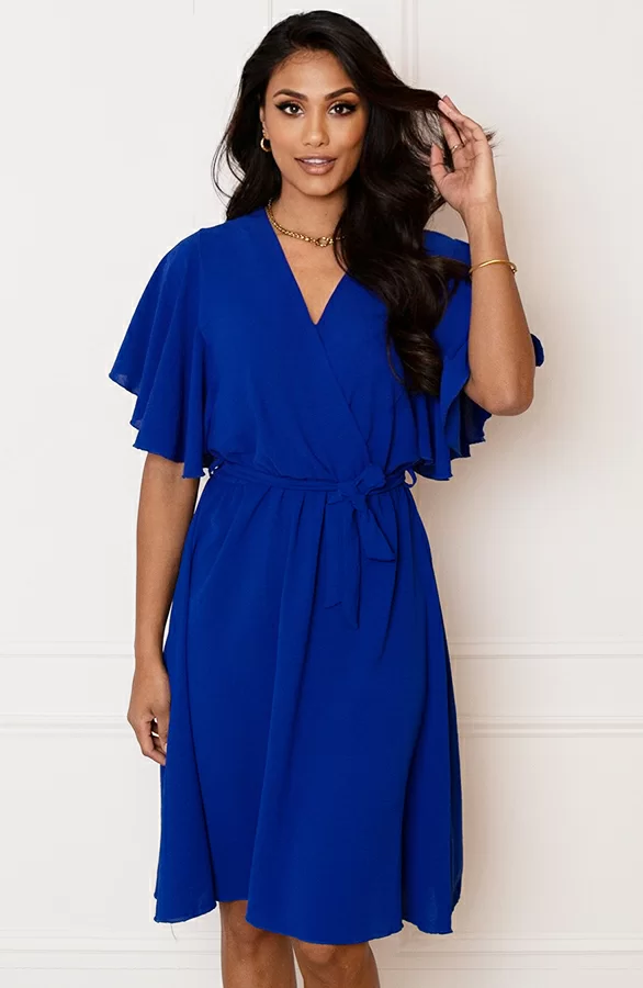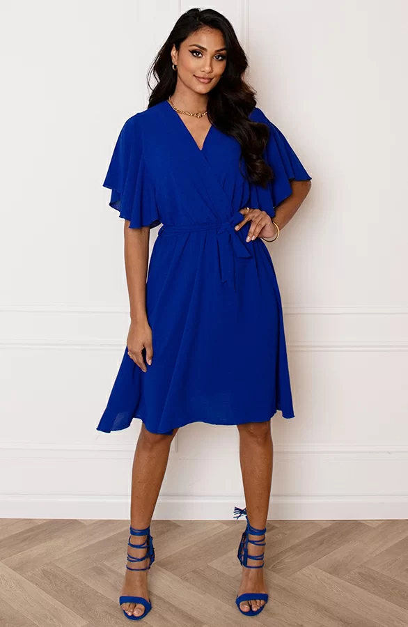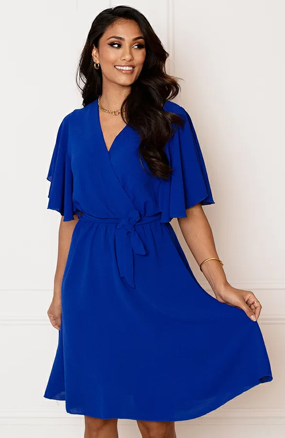Dit is het perfecte jurkje voor het aankomende seizoen! De jurk is voorzien van een v-hals en elastiek in de taille.