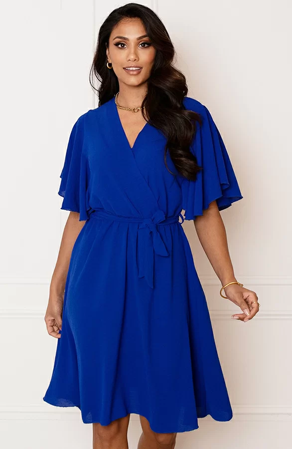 Details: v-hals, vleermuismouwen, bijpassend ceintuur in de taille en elastiek in de taille Materiaal: 100% Polyester