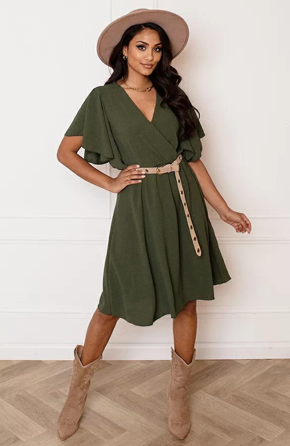 Dit is het perfete jurkje voor aankomend seizoen! De jurk is voorzien van super mooie vleermuismouwen en elastiek in de taille.
