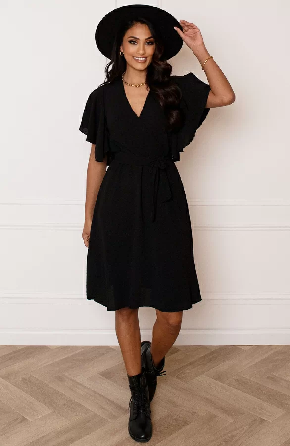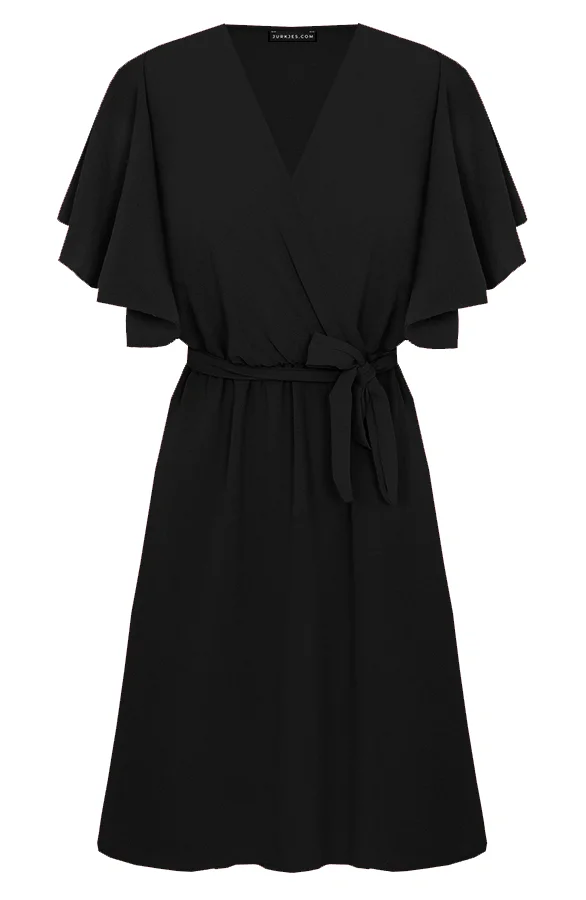 Een little black dress is onmisbaar in elke garderobe! Deze jurk is voorzien van elastiek in de taille en vleermuismouwen.