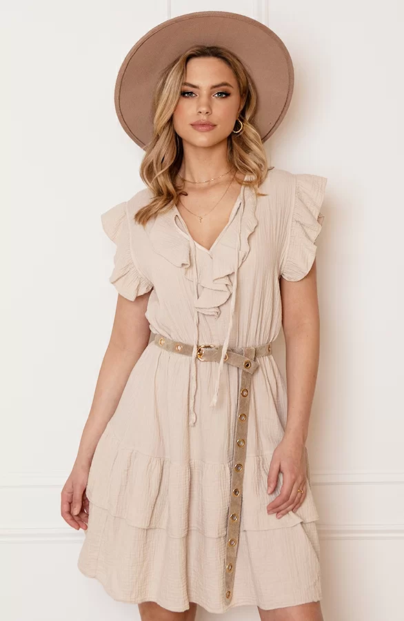 De perfecte jurk voor meerdere gelegenheden! Deze mousseline jurk is voorzien van verschillende laagjes en elastiek in de taille.