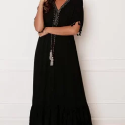 Met deze jurk loop jij er straks helemaal stralend bij! Deze jurk met korte mouwen is voorzien van een lint om te strikken en een v-hals.