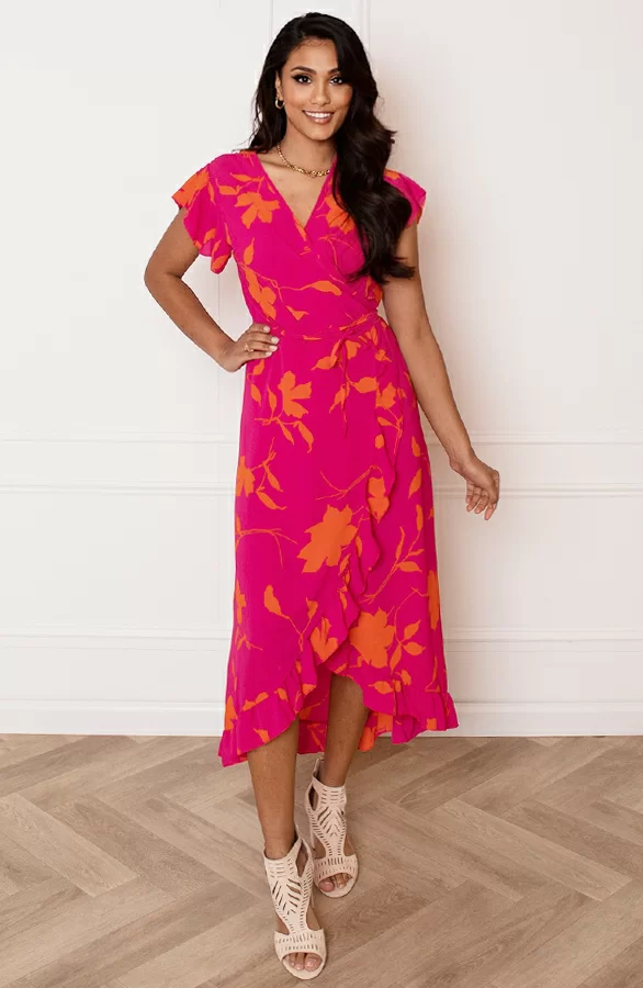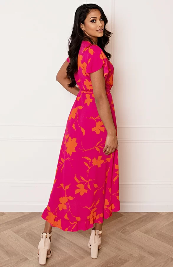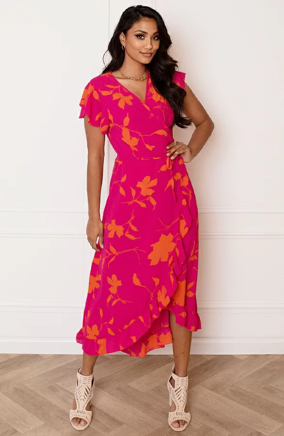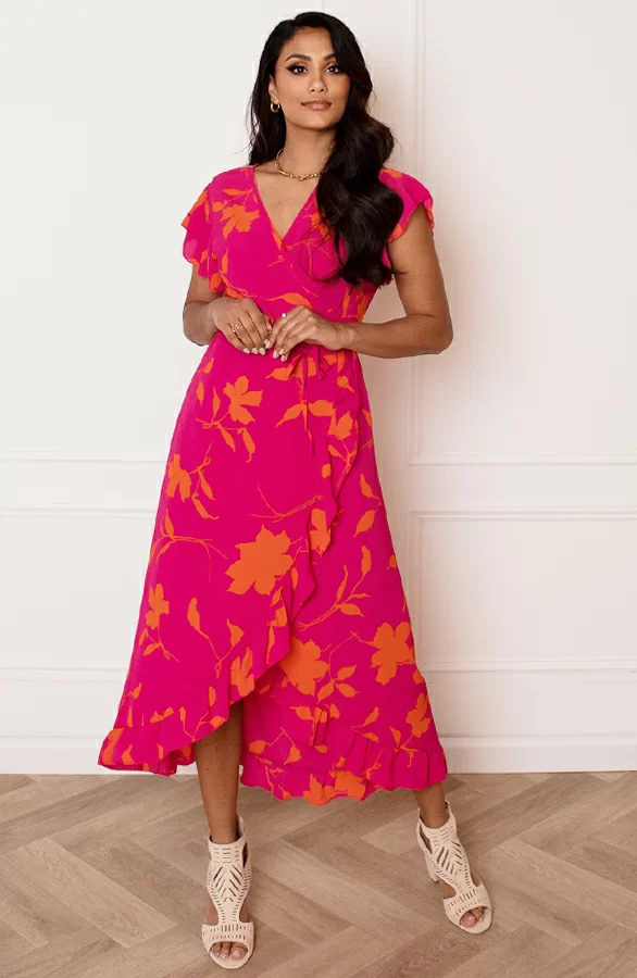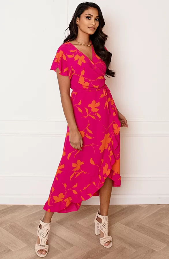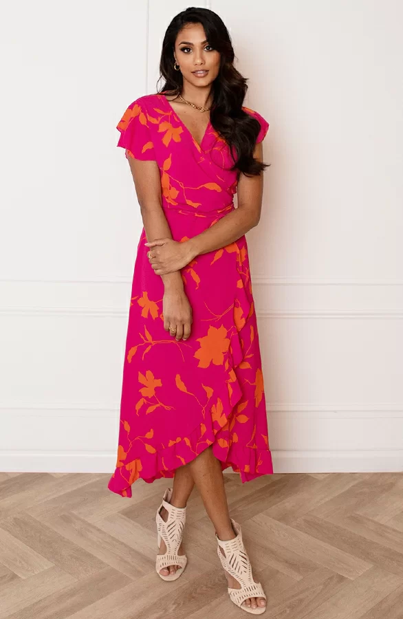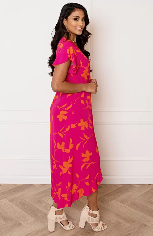 Loop er helemaal trendy bij met deze super vrolijke bloemenprint jurk! De jurk is voorzien van korte mouwen en een v-hals.