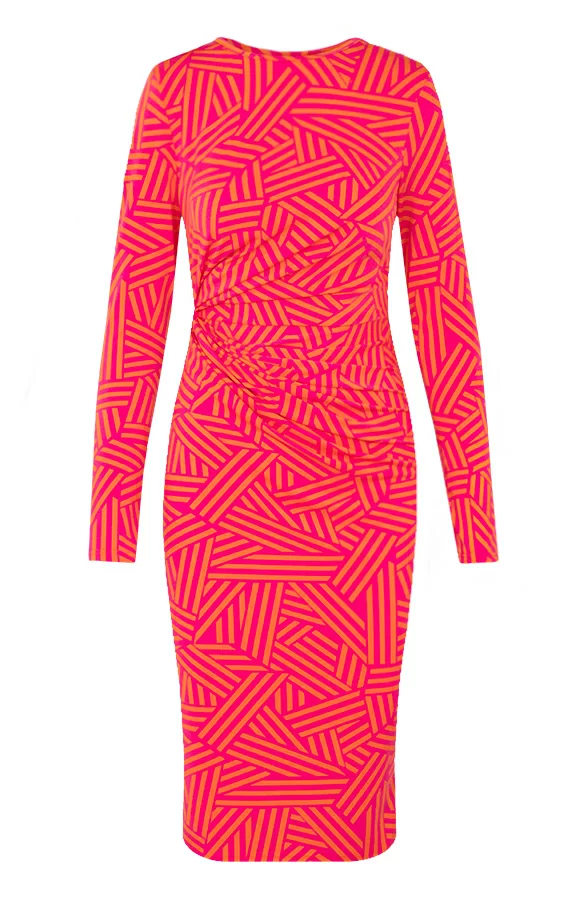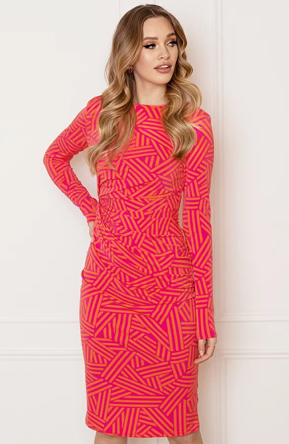 WAUW! Deze jurk is toch helemaal geweldig?! De gekleurde jurk is voorzien van stretch en schoudervulling.