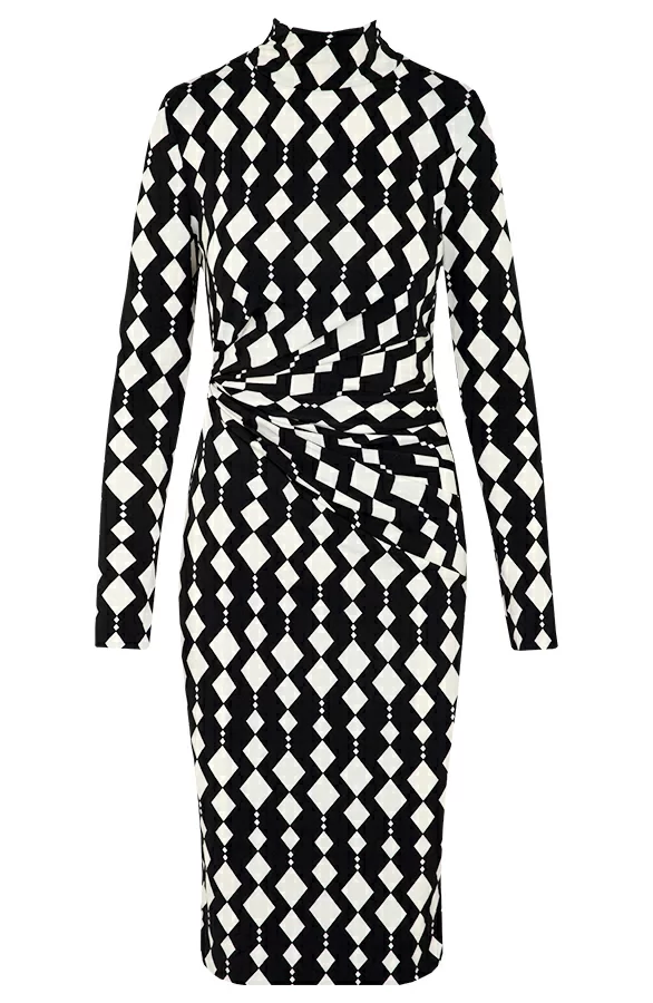 Met deze prachtige jurk steel jij de show! De jurk is voorzien van een super mooie print, stretch en schoudervullingen.