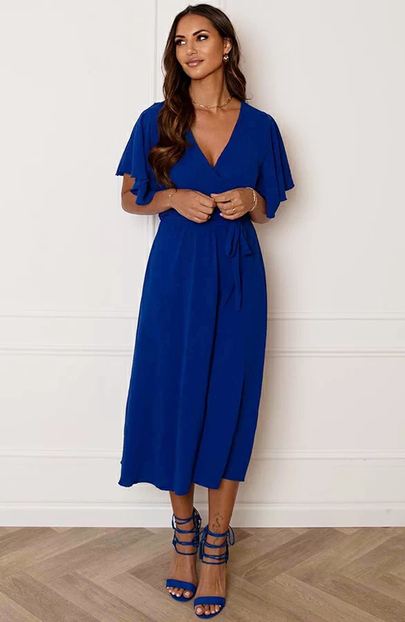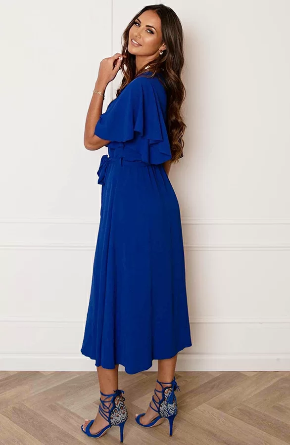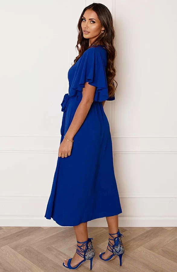 Wow deze eyecather is een aanwinst voor jouw garderobe! De jurk met vleermuisouwen is voorzien van een v-hals en verkrijgbaar in meerdere kleuren.