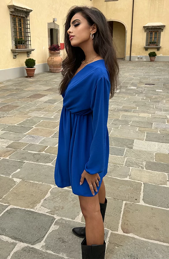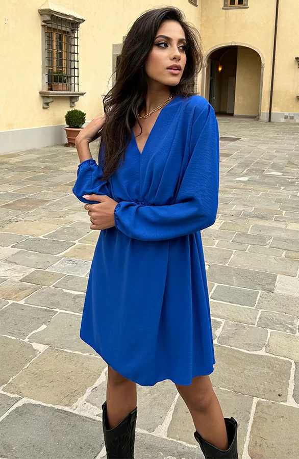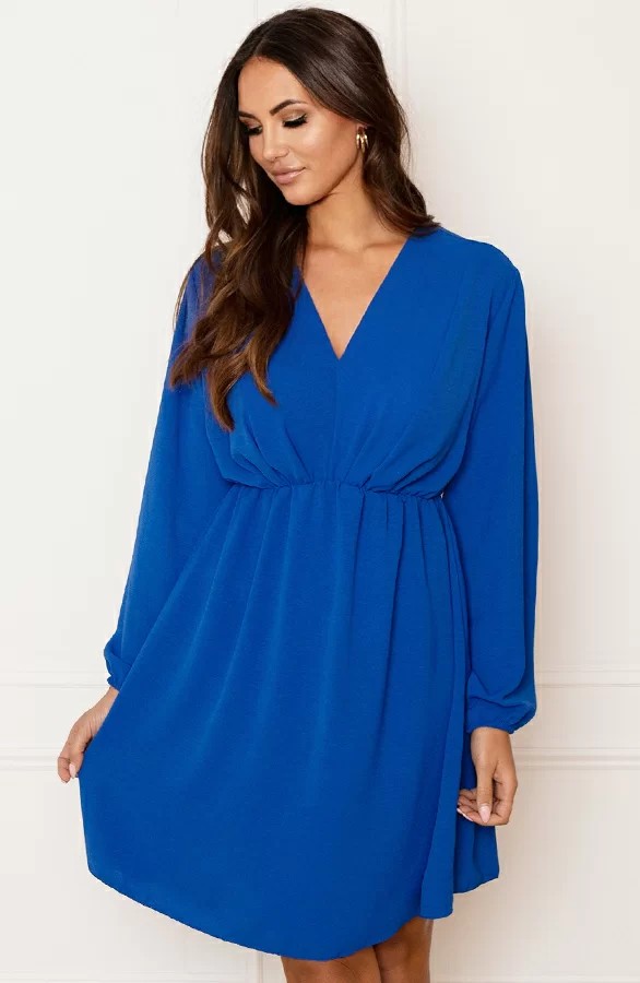 In dit jurkje mag jij zeker gezien worden! De jurk is voorzien van een v-hals en lange mouwen. Verkrijgbaar in meerdere kleuren!