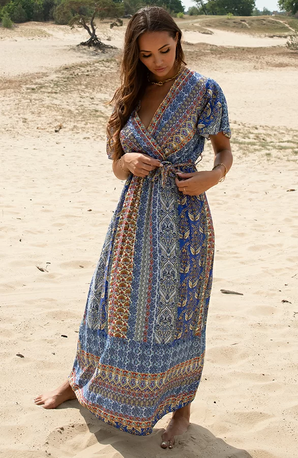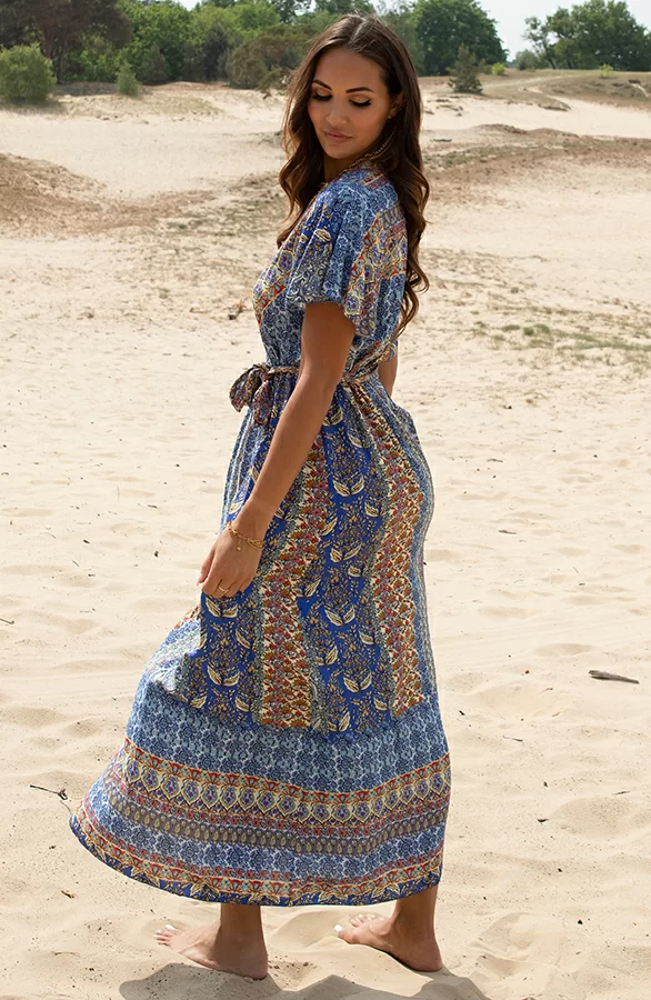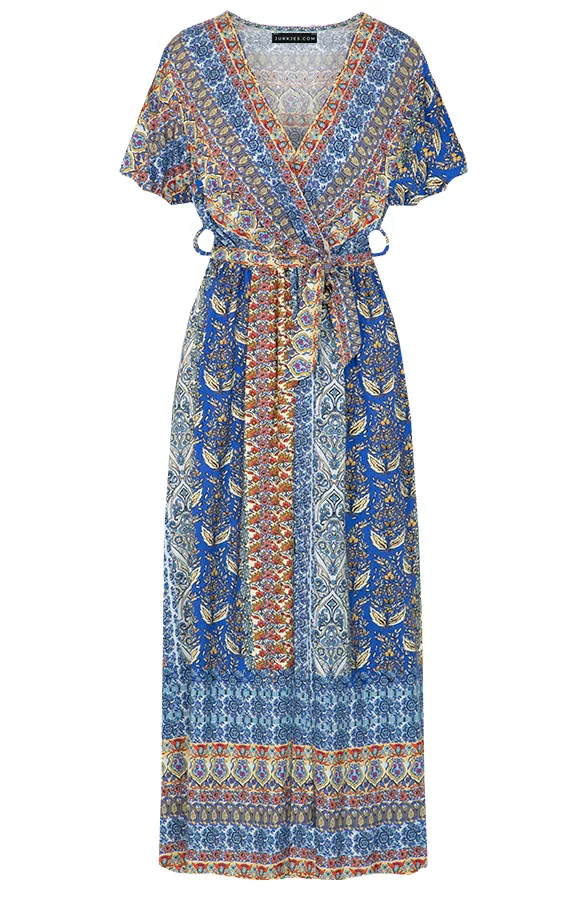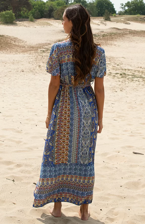 Dit wordt jouw nieuwe favoriete jurk! De v-hals jurk met korte mouwen is voorzien van elastiek in de taille.