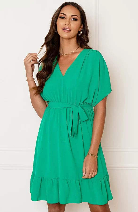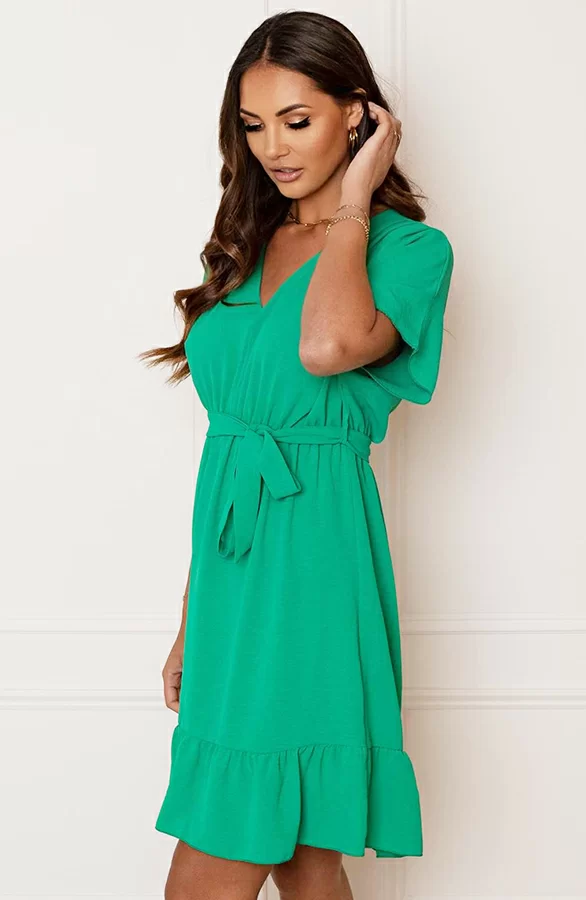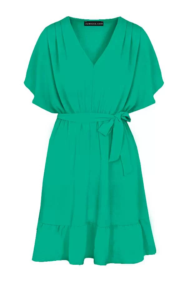 OHMY! Wij zijn verliefd op deze groene jurk! De jurk is voorzien van een bijpassend lint om te strikken en ruches.