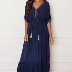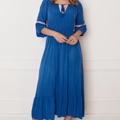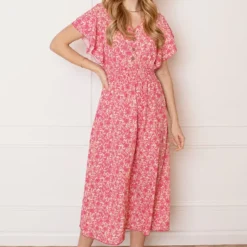 Met deze jurk loop jij er helemaal on trend bij! De jurk met smocked mouwen is voorzien van een v-hals en elastiek.