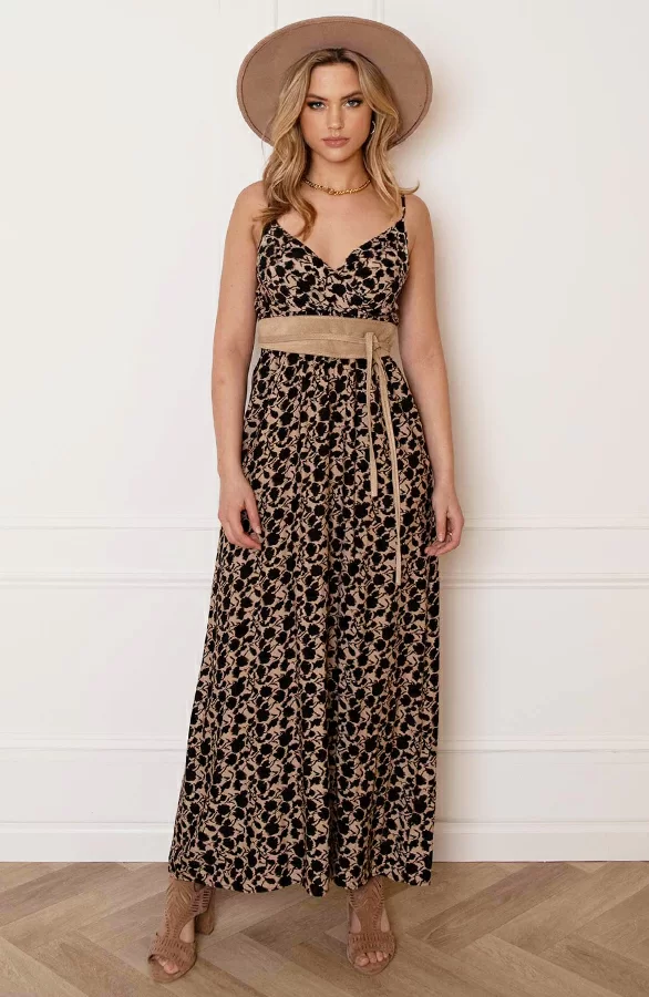 Details: v-hals, elastiek in de taille en verstelbare spaghettibandjes Materialen: 35% Katoen, 65% Viscose