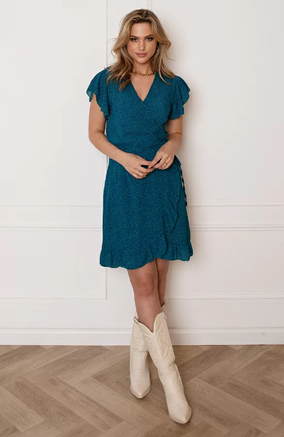 Met dit super leuke jurkje ben jij het stralend middelpunt! De jurk is voorzien van korte mouwen, ruches en een panterprint.