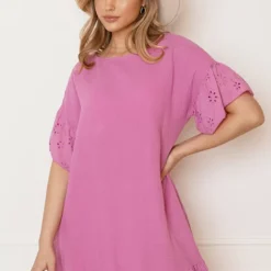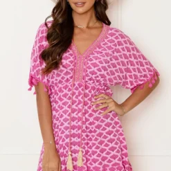 Colorblocking! Hoe leuk is de kleurencombi van dit jurkje?! De jurk is voorzien van ruches, korte mouwen en een lint om te strikken.