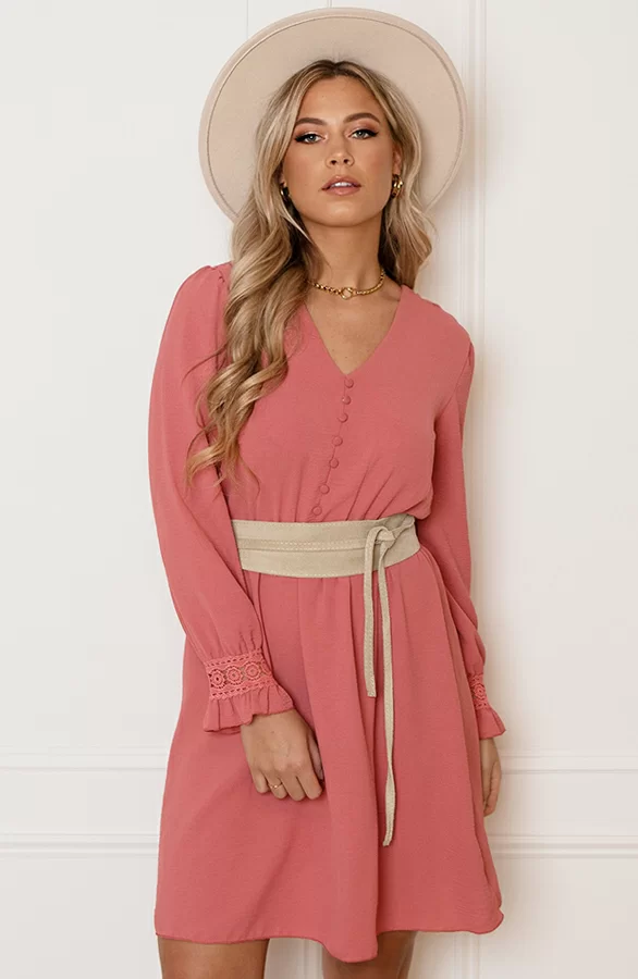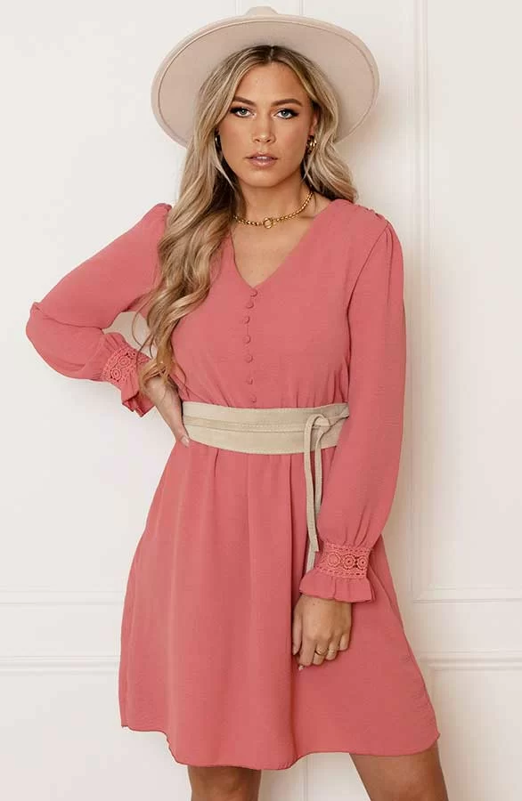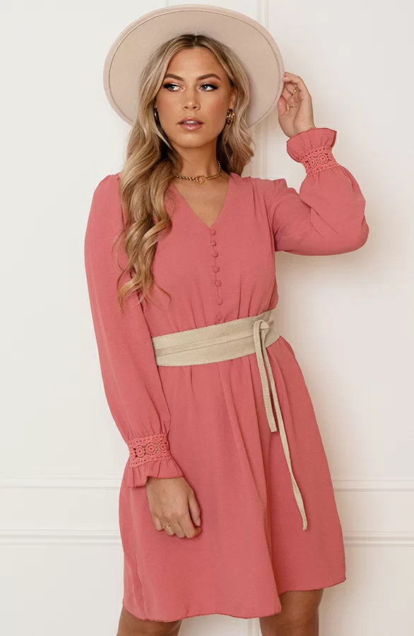 WAUW! Dit jurkje is perfect voor elke gelegenheid! De jurk met sierknoopjes is voorzien van kant en elastiek bij de mouwen.