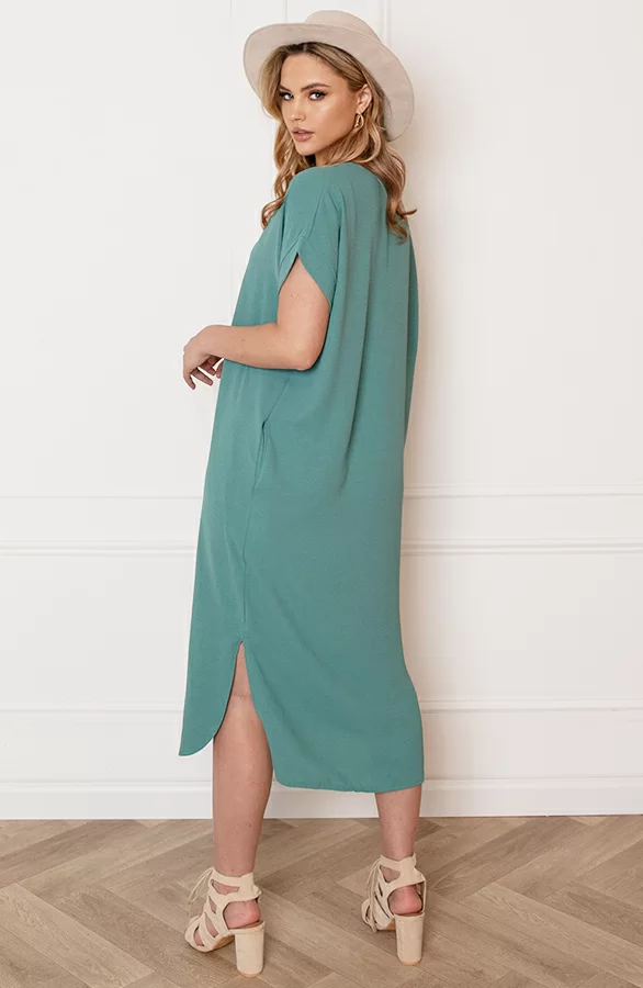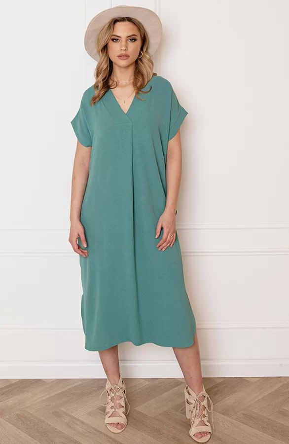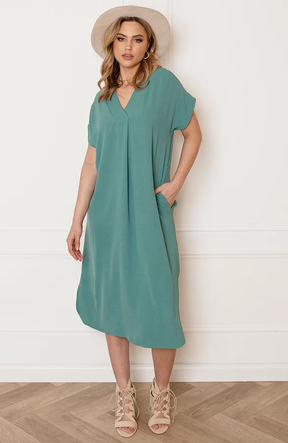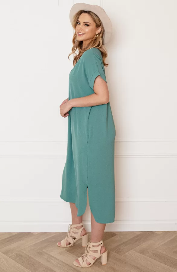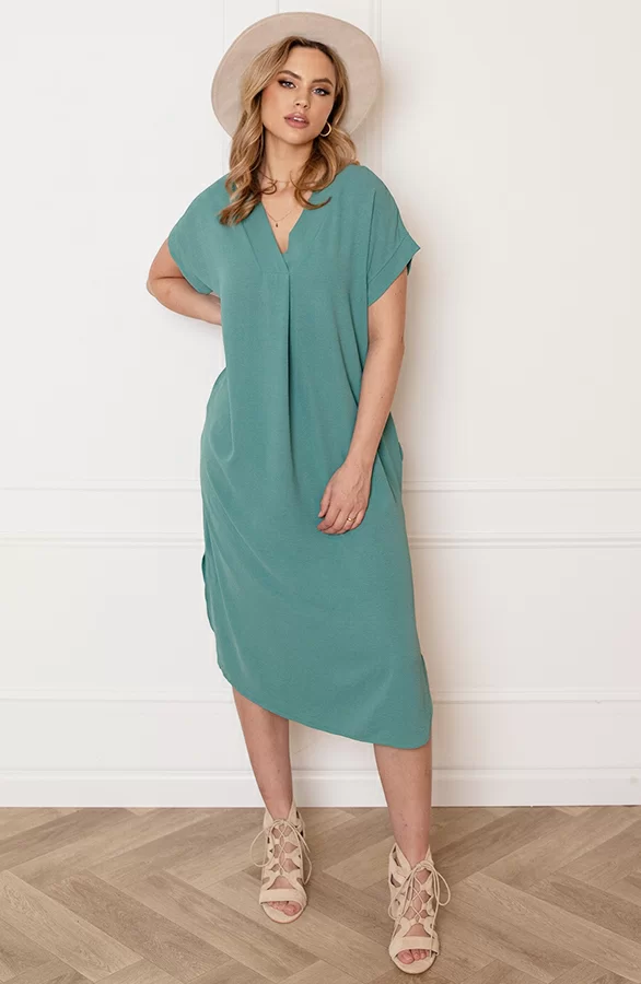 Deze populaire jurk is nu ook verkrijgbaar in de trendy kleur mint! De jurk is voorzien van korte mouwen en steekzakken.